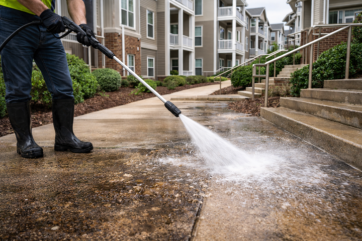We clean all the shared spots in your neighborhood. Our team washes the paths where people walk. We scrub the big signs and the front gates. We also tidy up the parks and meeting areas. This keeps the whole community looking nice for every family. We work hard so your streets and entrances stay bright and clean for everyone.