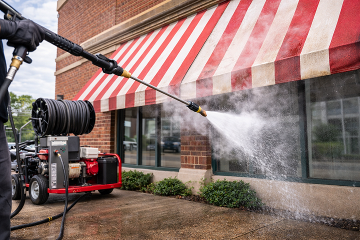 We wash the covers over your doors and windows. Our team scrubs away the green slime and the dark spots. We clean both the soft cloth and the hard metal parts. This makes them look brand new again. It also helps the covers stay strong so they do not break. Your shop or house will look great for a long time.