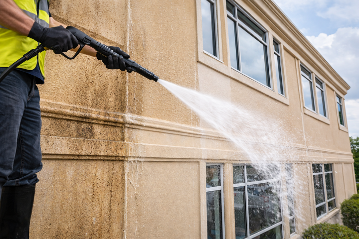 We wash the outside of big buildings. We scrub away the dirt and the green slime. We clean off the black spots from the air. This helps the walls stay strong and look new. It keeps the building safe from rot and rust. Your business will look very clean to everyone who walks by. We make sure the outside of your property stays in good shape for a long time.