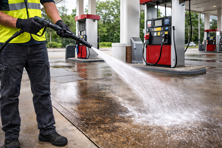 We clean gas stations to make them look new. Our team scrubs away the oily spots and the sticky black gum. We wash the floor where people park and fill up their cars. This gets rid of all the dirt and slippery mess. It helps keep everyone safe when they stop for gas. A clean shop makes your customers feel happy and secure.